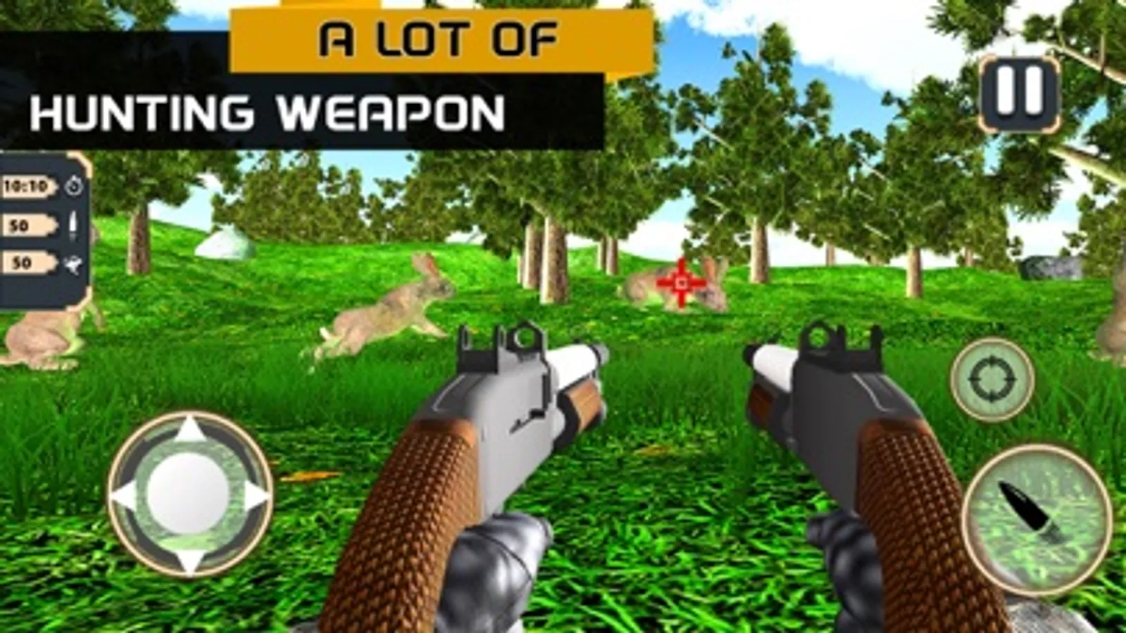 If you want to show off your professional hunting skills then clever animal hunting games are best for you.If it is jungle Rabbit Hunting or domestic lovely rabbit hunting then it is a challenge hunt for you as professional sniper hunters in safari jungle for your survival. Double Guns Rabbit Hunting 3D is the most challenged hunt game due to it's natural rabbit AI and realistic weapons ( double sniper + dual Pistols + dual Machine Guns) controls.This dual sniper hunting game is crazy one game due to rabbit( conejo) cleverness and hide behind green bushes and rabbit hole and also because of infinite levels fun. There are infinite levels and each level give you different number of rabbit sitting on different positions with smart listening skills.