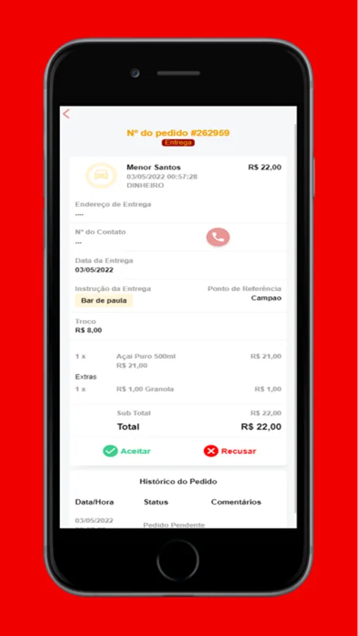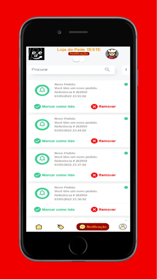 Quando um pedido é feito pelo cliente, o funcionário ou dono do estabelecimento recebe uma notificação de novo pedido no dispositivo móvel, assim, ele pode aceitar ou recusar o pedido, se o pedido for aprovado, ele pode alterar o status do pedido.