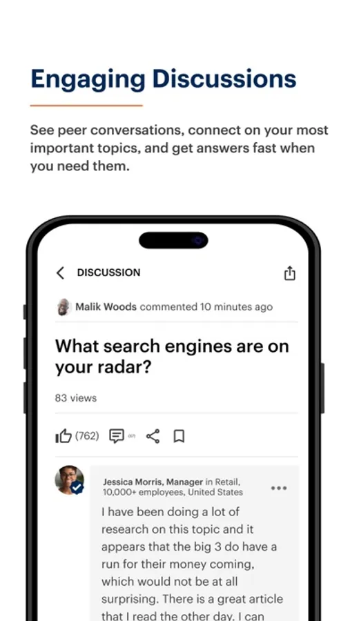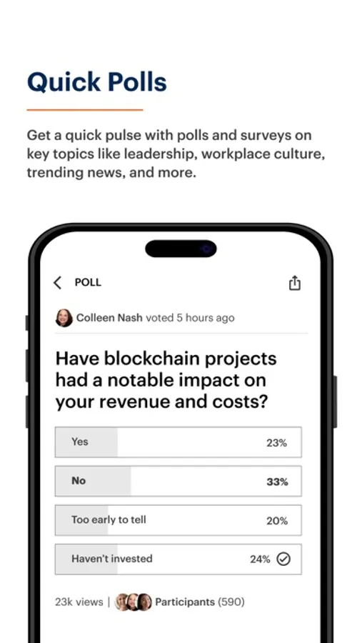 • Ask questions and polls to get real-time insights from peers;