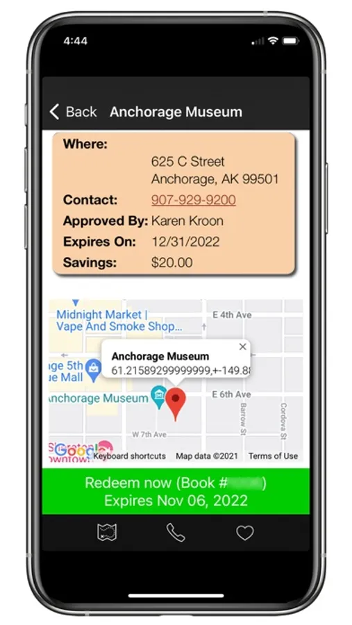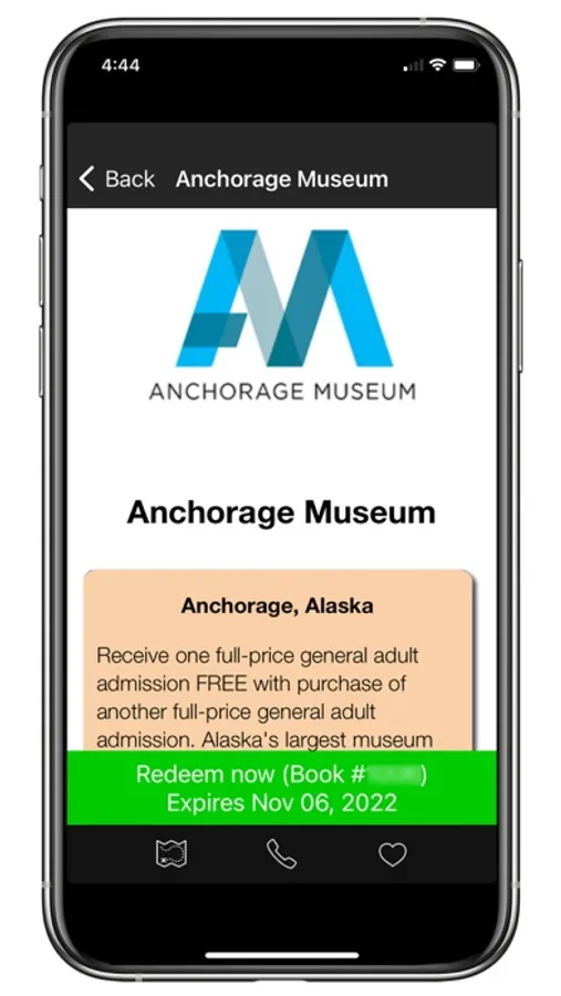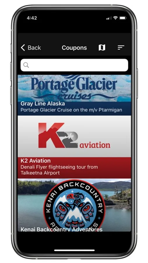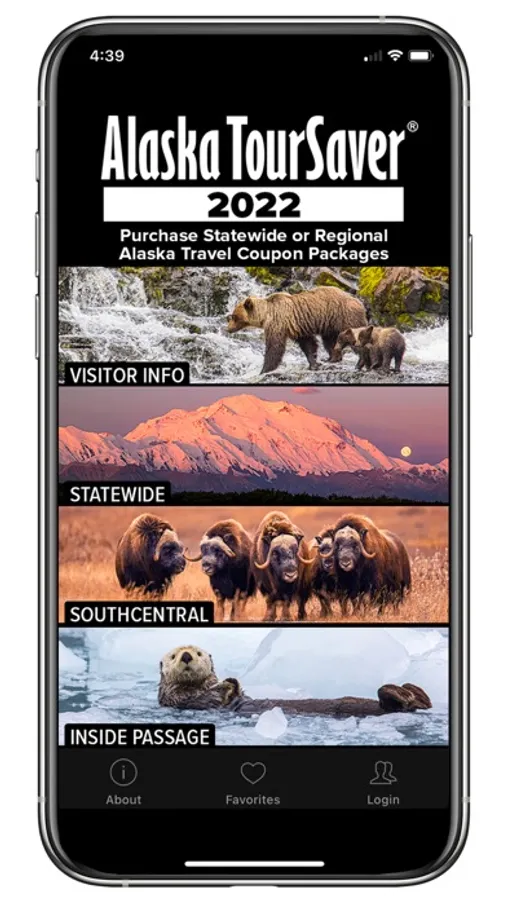 The Alaska TourSaver® App for smartphones works just just like the traditional Alaska TourSaver Coupon Book and includes a unique booking number, plus maps and GPS locations of TourSaver vendor attractions. After downloading the Alaska TourSaver App from the iTunes App Store, pick one of the four coupon packages to purchase, then download to your smartphone and simply use it like the physical coupon book.