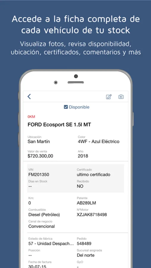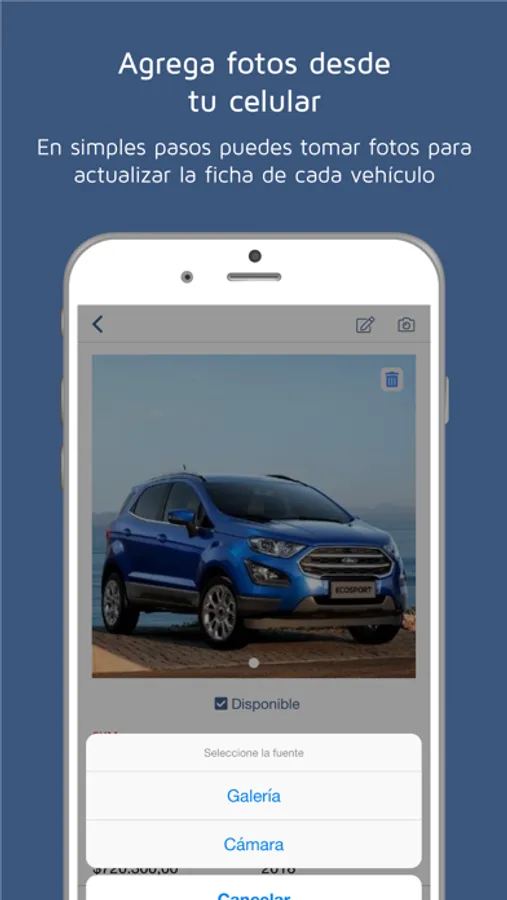 - Subir imágenes a los vehículos desde tu celular o la galería de fotos