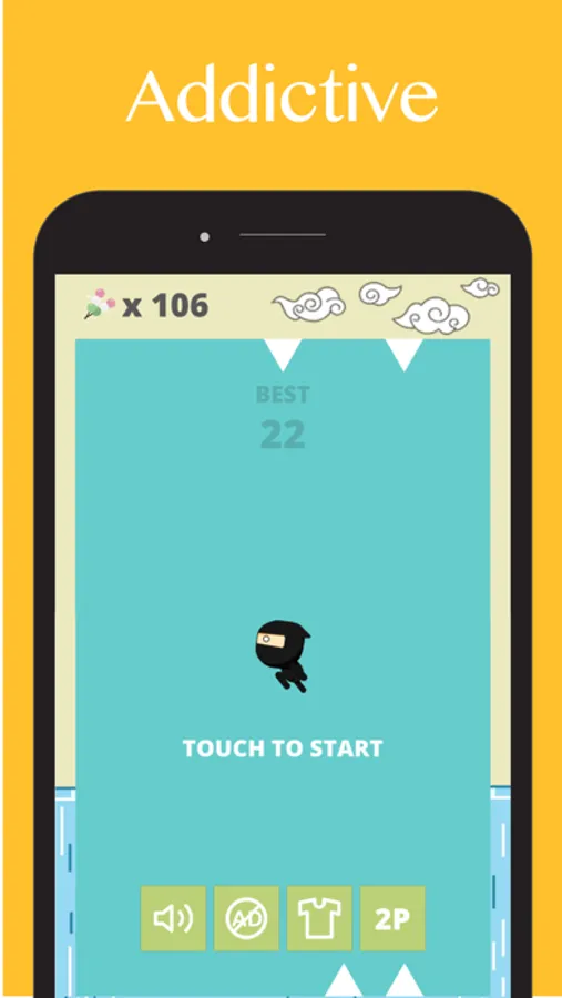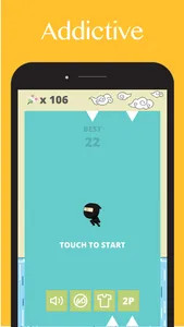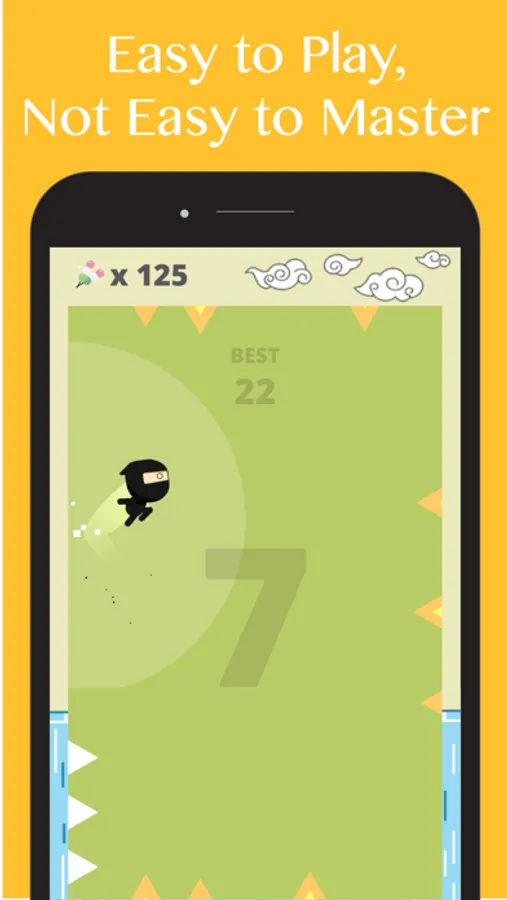 * Tap the screen to make ninja dash. If the ninja touch the wall, the ninja will turn direction. If the ninja touch the spike, the game is over. Ninja can rebirth and revenge immediately.