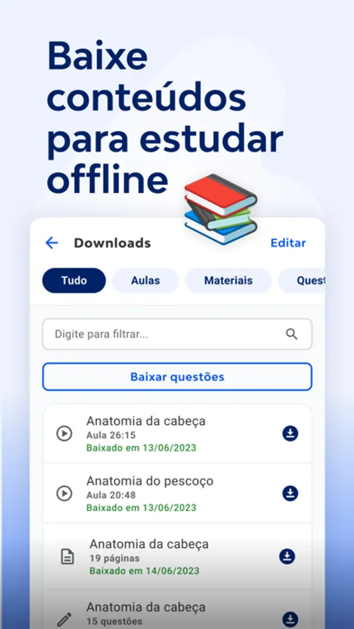 • Faça download das suas aulas favoritas e não gaste seus dados móveis quando estiver longe do wi-fi;