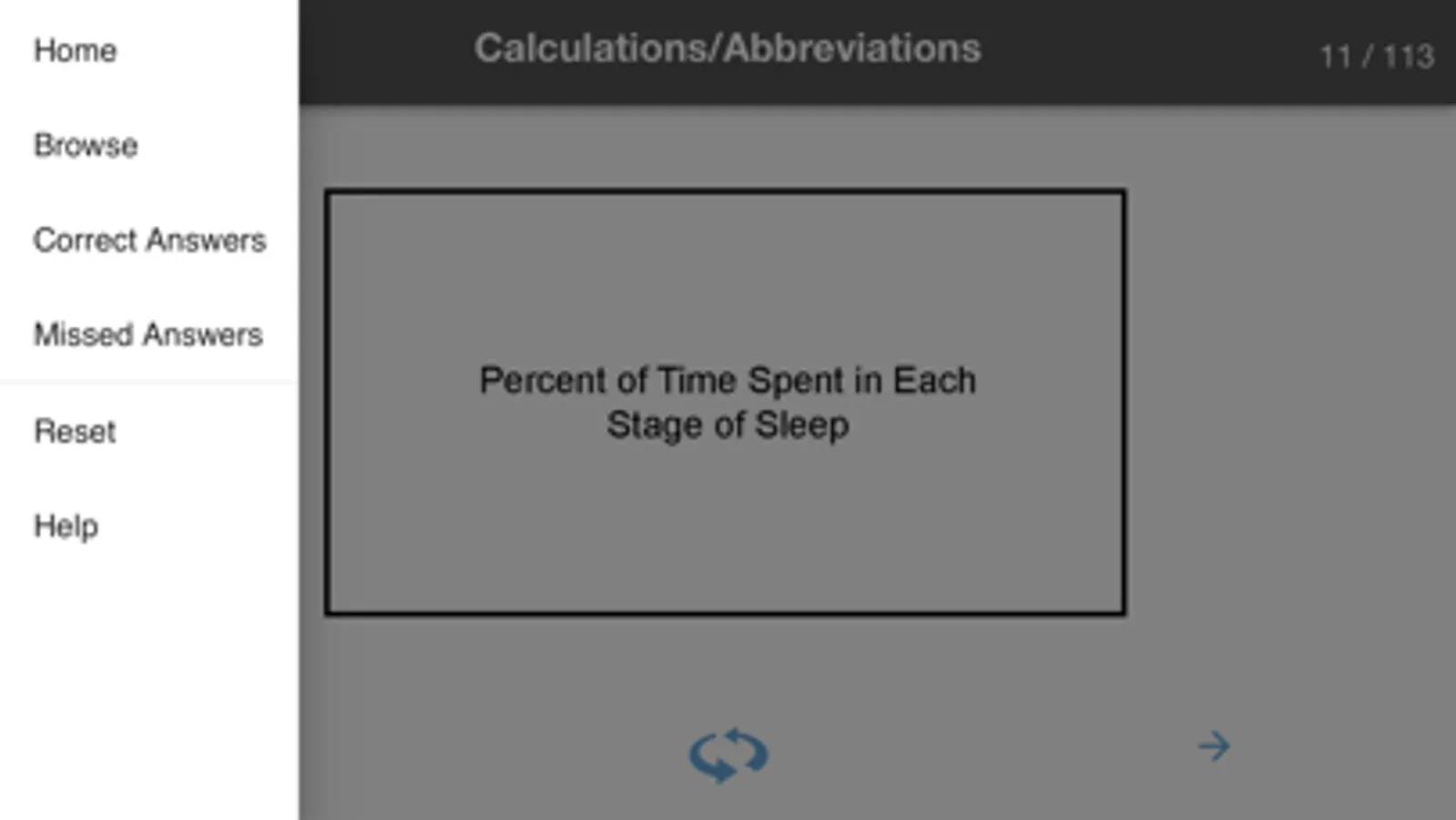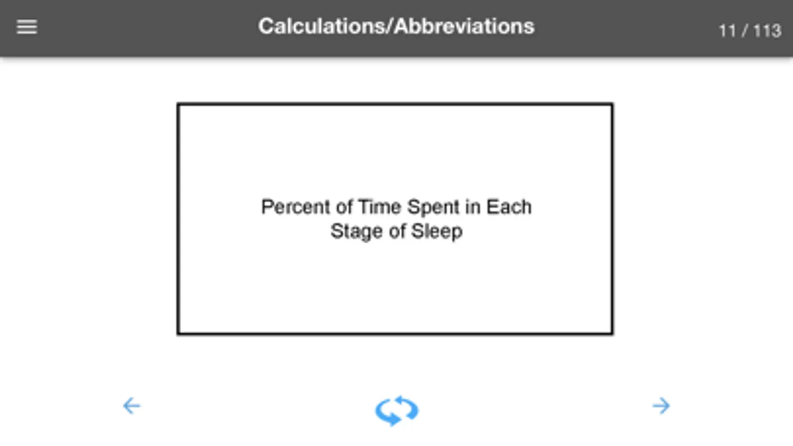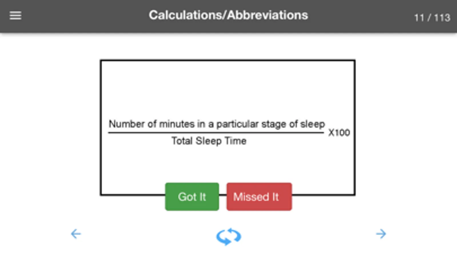 Each card has a stated formula or common abbreviation on the front side of the card with the corresponding correct response on the back side of the card.