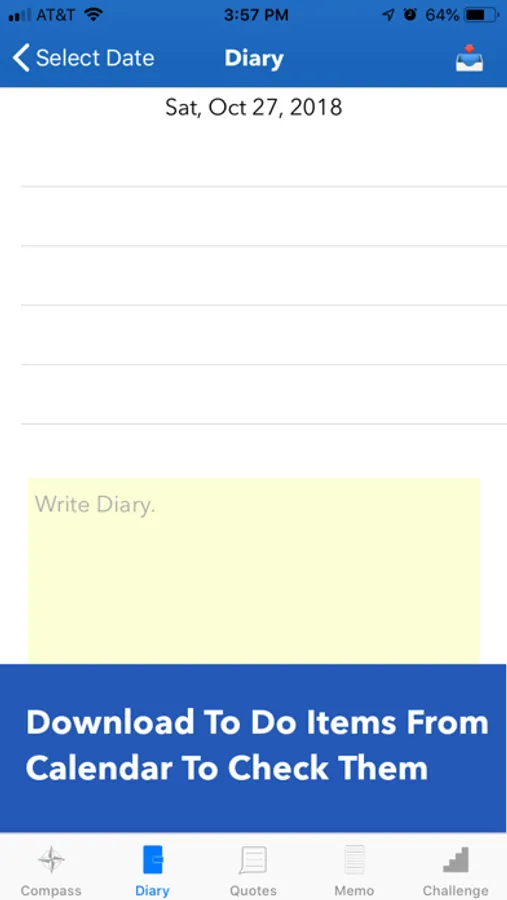 Tap To-Do Item to put check mark when you accomplish the item. Write Diary by reflecting your accomplishment on that date and save.