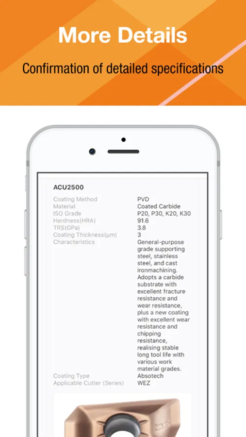 Application for turning grades and inserts of SUMITOMO ELECTRIC INDUSTRIES, LTD. which provides wide lineup for turning tools including Igetalloy, SUMIBORON and SUMIDIA.