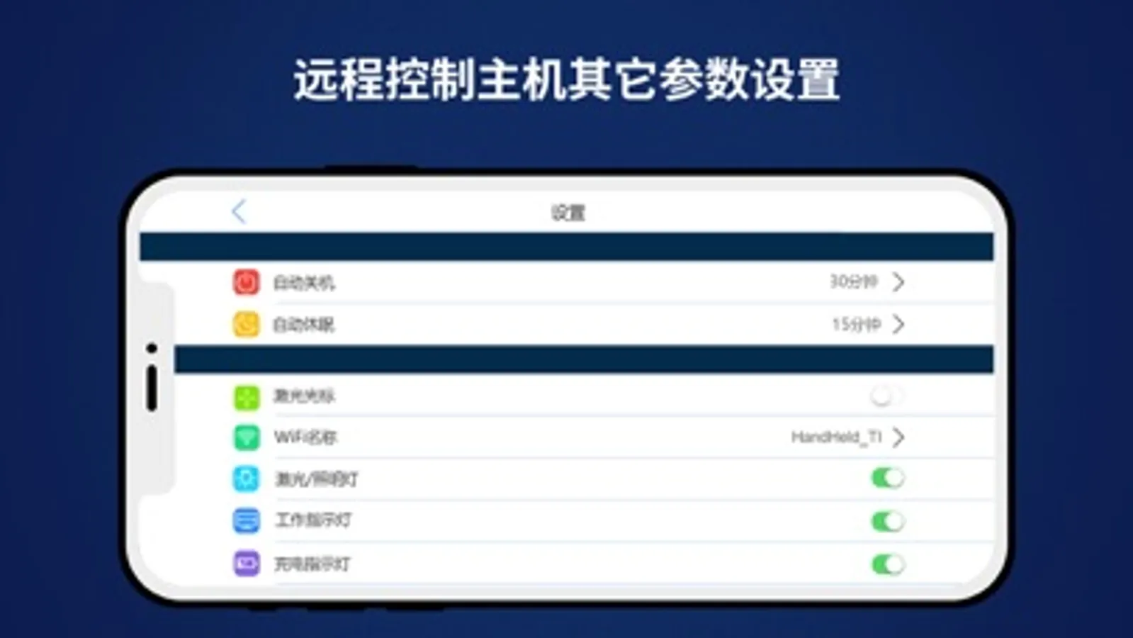 4.对工作指示灯、充电指示灯、激光/照明灯开关控制;