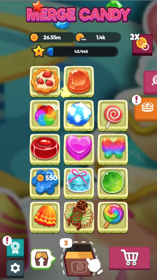 Merge candies with one another to upgrade your candies. Unlock new worlds of candies.