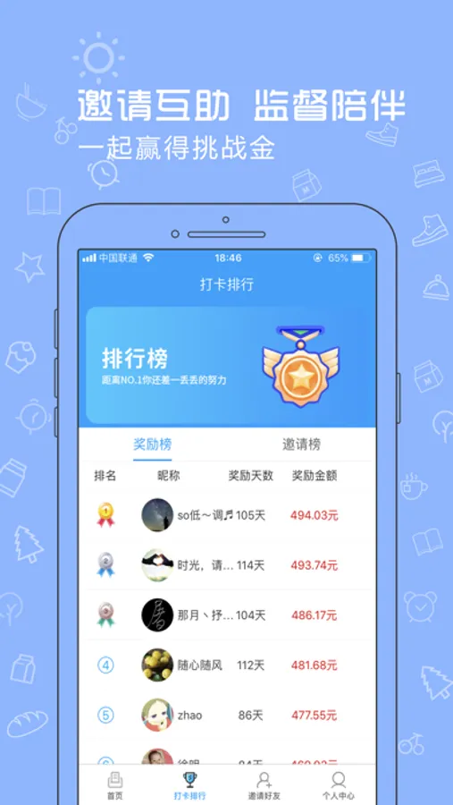 -奖励:你为你的目标打卡,我们为你的现金红包买单;