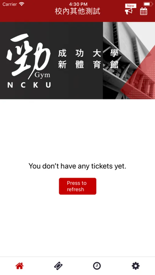 成大新落成的體育館票券系統,提供進入游泳池與健身房的使用者取票與現場驗票的票券應用程式,從取票到驗票皆可以在行動端進行。