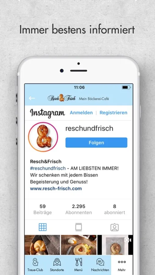 Resch&Frisch Instagram: Direkt aus der Treue App heraus kannst du unserem Instagram Account folgen, Beiträge liken und kommentieren.