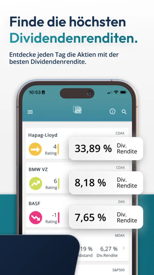 We do the hard work for you. You receive daily automated and data-based buy and sell recommendations. We guarantee the highest data quality through our reliable partners Morningstar and boersengefluester.de. As an independent creator of investment recommendations, we are listed with BAFIN.