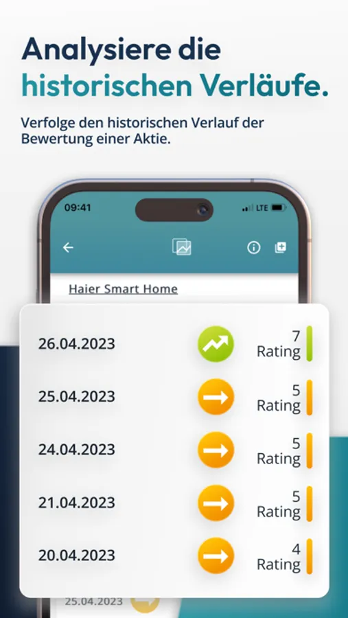 All stocks are automatically evaluated daily after the market close. The evaluation is objective and based on publicly available data. A stock is recommended for purchase when the rating reaches a certain point value. This is derived from the sum of 12 key figures. The evaluation is transparent and comprehensible. Manage your stocks easily and clearly and be informed about the ideal selling point.