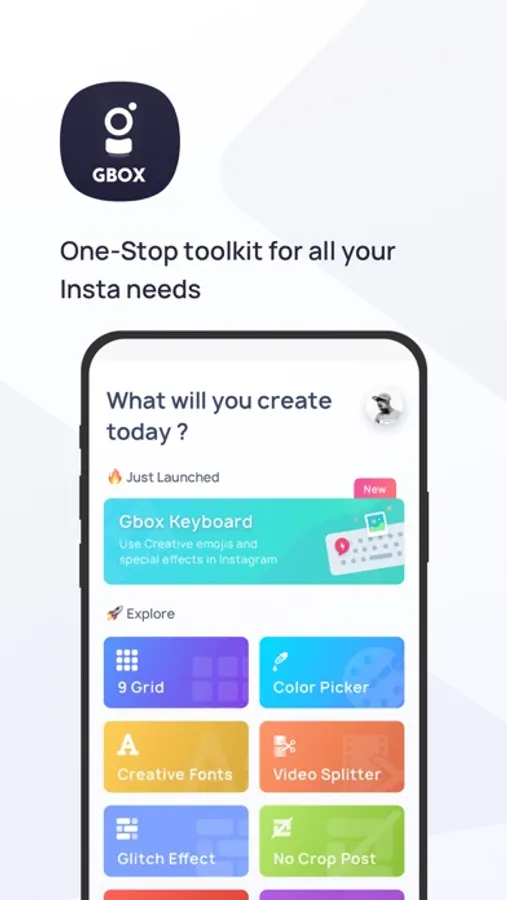 All-in-one app for Instagram features & effects. Gbox toolkit for Instagram has beautiful modules with Instagram effects to create designer Instagram posts, no