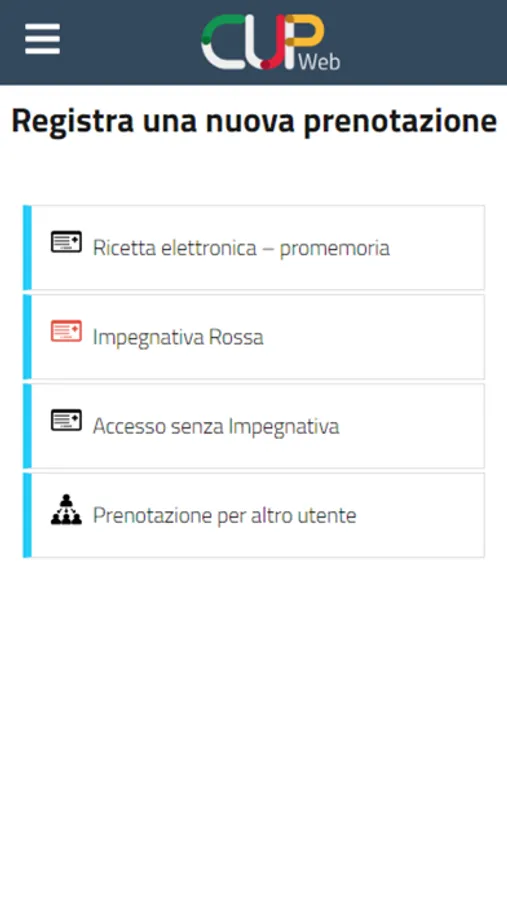 Servizio accessibile a seguito di autenticazione SPID (www.spid.gov.it) che consente la prenotazione della Ricetta elettronica-promemoria (Visite e esami specialistici o Esami di Laboratorio), della Impegnativa Rossa, Accesso senza Impegnativa e Prenotazione per altro utente.