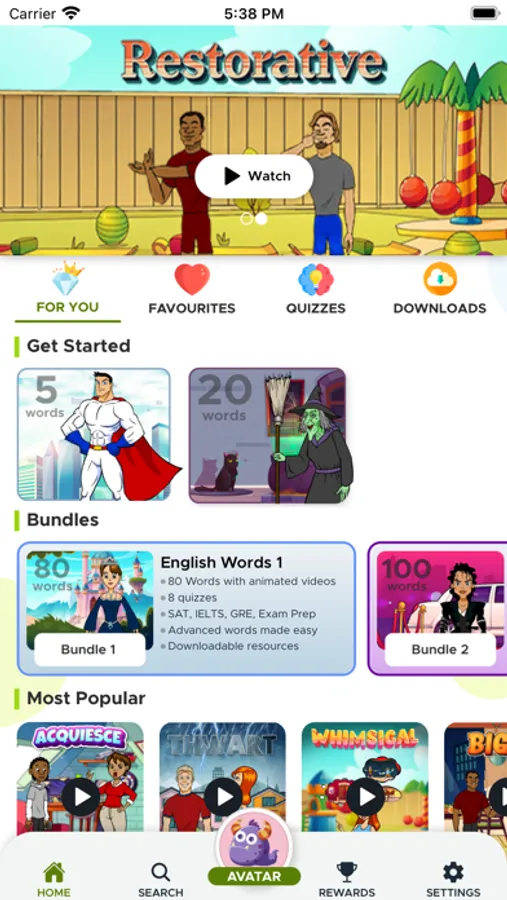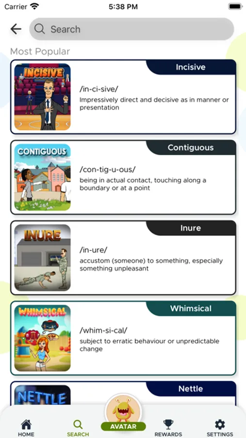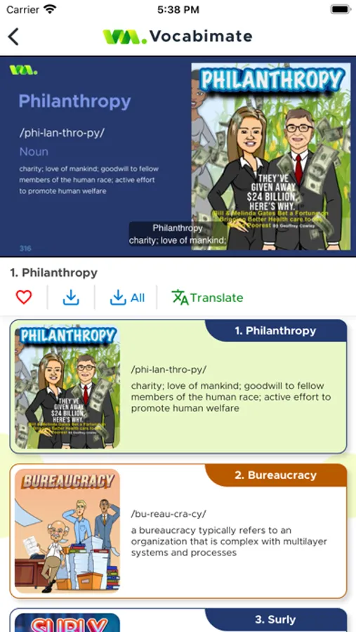 Vocabimate solves this problem like never before. It provides animated videos that have been specially designed by a combined team of highly experienced teachers and entertainers to rapidly improve your English vocabulary. These are short videos that teach you not just the meaning of a word but also how to use it, allowing you to truly master each word and start using it in your day-to-day life within a minute!