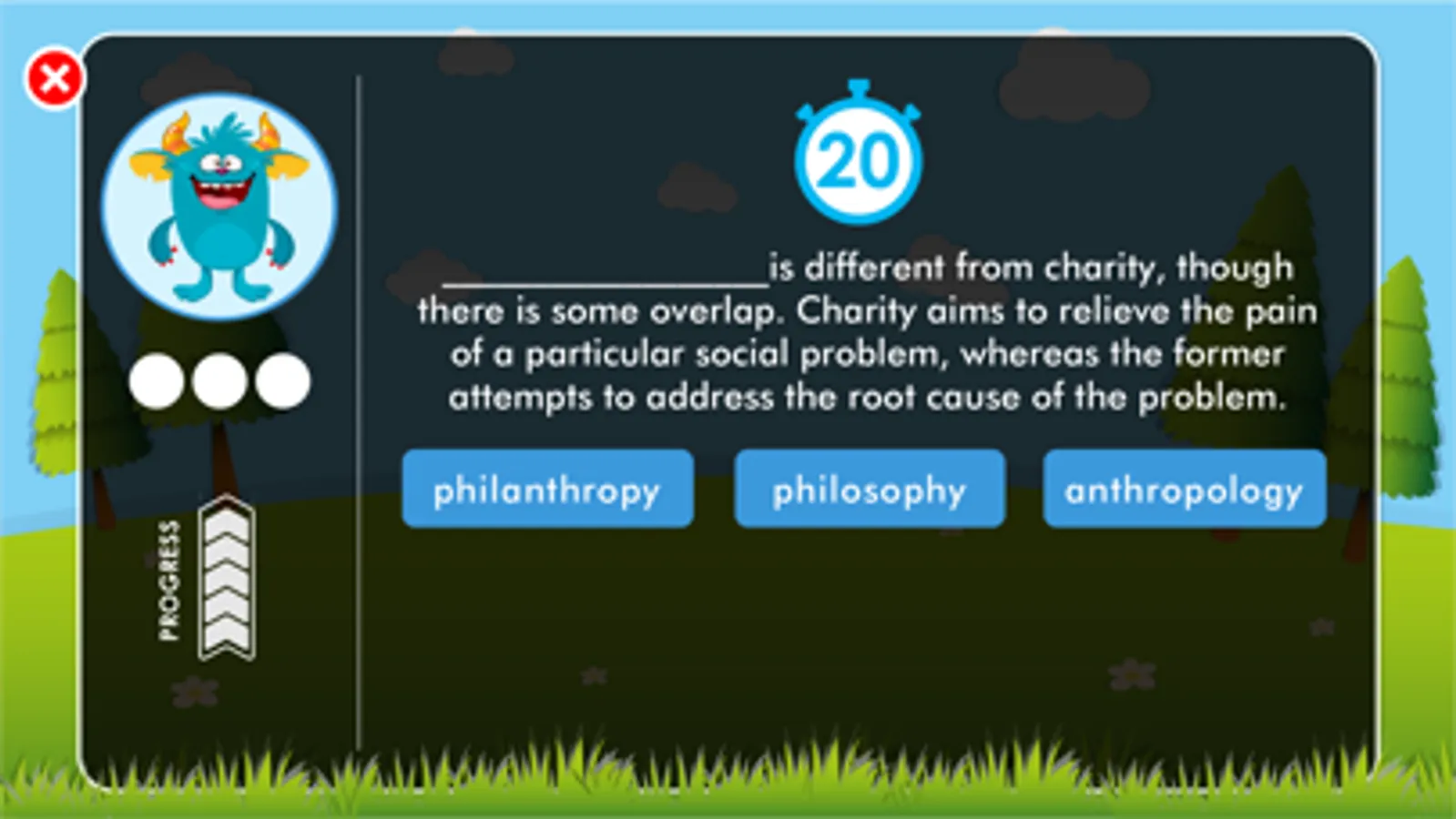 Vocabimate also provides fun quizzes to reinforce your learning. Simply tap on each word to watch its video and learn the word. After every few words, a quiz will pop up for you to test your knowledge and reinforce your learning. Watch videos and complete quizzes to earn rewards and points from the “quiz monster”. Users will have fun watching their vocab level increase and earning rewards and titles as they improve their skills.