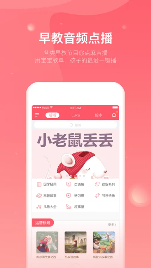 精选蜻蜓FM、喜马拉雅等海量音频资源,故事英语国学儿歌样样有;