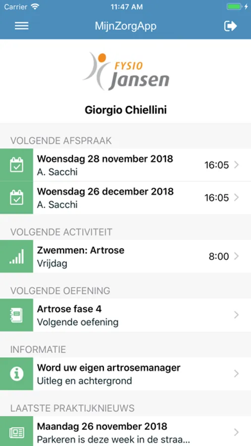 MijnZorgApp is ontwikkeld voor de cliënten van fysiotherapeuten en oefentherapeuten. Inmiddels werken er al honderden praktijken en duizenden therapeuten met de app. De zorgmarkt vraagt om steeds meer innovatieve oplossingen om tegemoet te komen aan trends en ontwikkelingen als de 24/7 economie, digitalisering, vergrijzing en de mondige en actieve zorgconsument. De combinatie van het automatisch ontvangen van afspraakherinneringen en huiswerkoefeningen op mobiel, maakt de app uniek in de fysiotherapie! MijnZorgApp is een combinatie van het platform huiswerkoefeningen.nl (HWO) en de afsprakenapp.