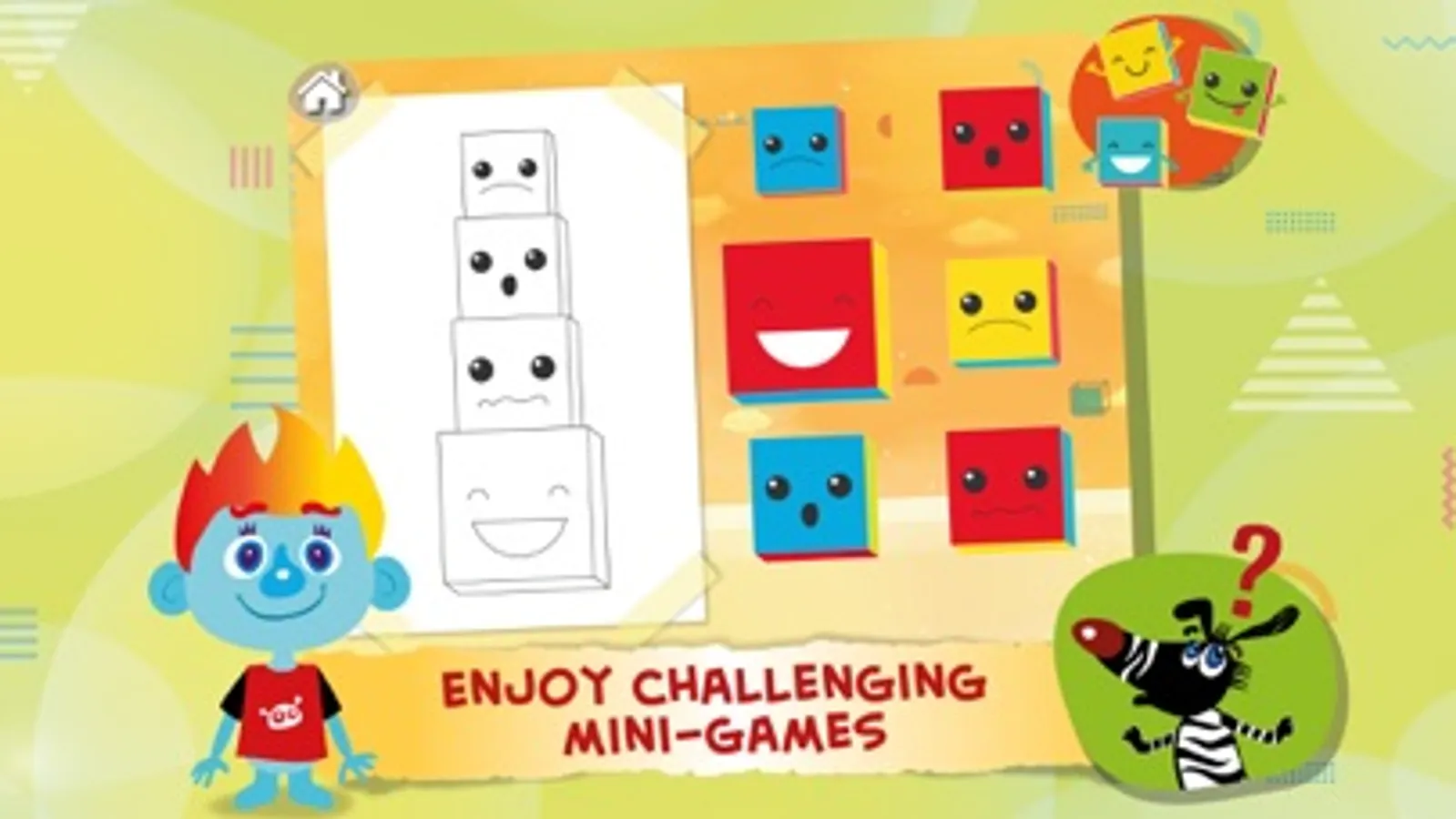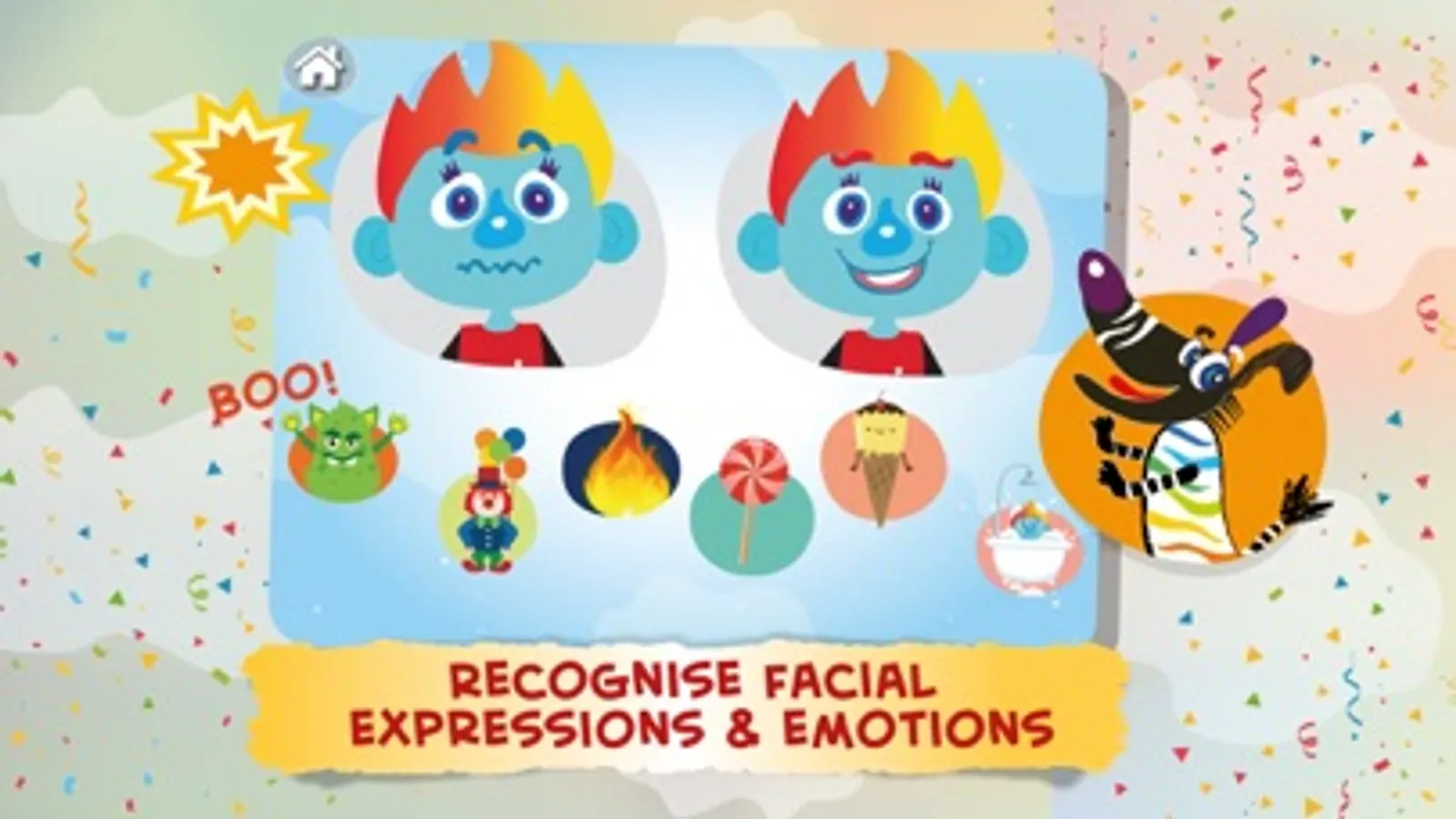 • Develops associative thinking by matching the same feelings expressions on different game characters