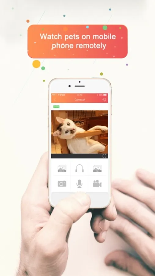 This is a kind of pet interaction webcam with advanced functions. Now just pick up your mobile phone and open APP “Smart Pet”, you can accompany your pets at any time and any place. You can watch and talk to your pets, feed food and play with pets by controlling the laser dot. Create your own space with pets and keep it close to you at all times.