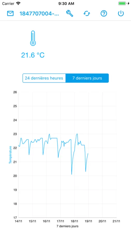Grâce à l'application Engie Solutions monitoring, vous pouvez accéder à la mesure de la température de votre appartement en vous connectant à votre capteur. Vous pouvez aussi communiquer avec les techniciens d'Engie Solutions via une application de chat intégrée.