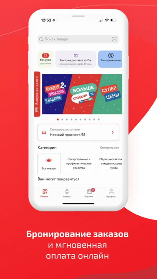 • В приложении доступна карта Забота о Здоровье, которую можно использовать наравне с обычной. Карта автоматически закрепляется за вами по номеру телефона при регистрации в приложении. — вы сможете следить за бонусным балансом и получать персональные предложения, скидки.