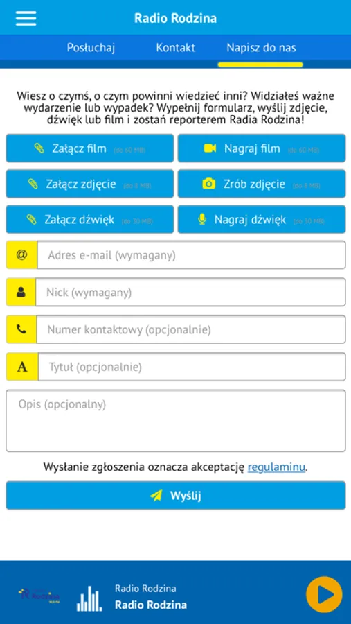Aplikacja Radia Rodzina pozwala na słuchanie Radia Rodzina na iPhone lub iPod Touch a także na iPad gdzie chcesz i kiedy chcesz. Pozwala też na kontakt z naszą rozgłośnią i na przesyłanie treści multimedialnych bezpośrednio do nas.