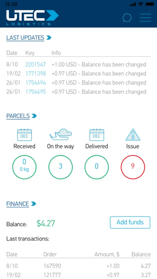 The UTEC Logistics mobile application allows you to track the status of current shipments, make financial transactions and consult with company staff.