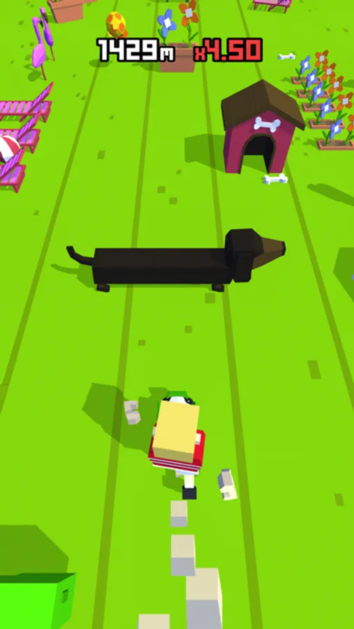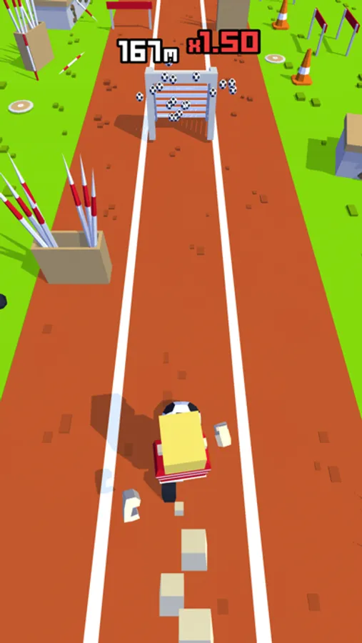 Race through the athletes track, run through gardens and even barge into peoples kitchens! How far can you go?