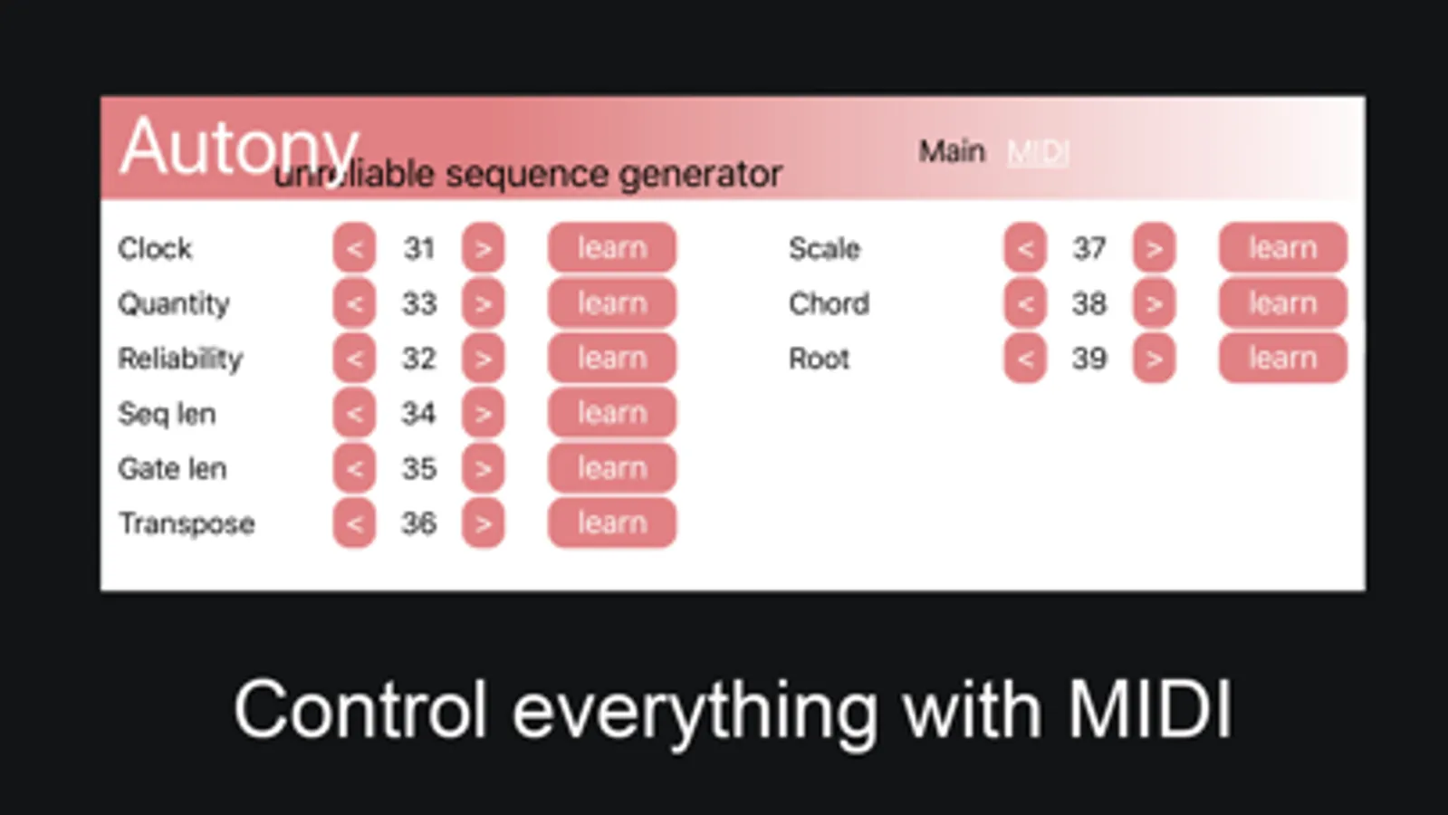 AUv3 Midi sequence generator which generates musical evolving sequences that you can further automate or modulate via midi.