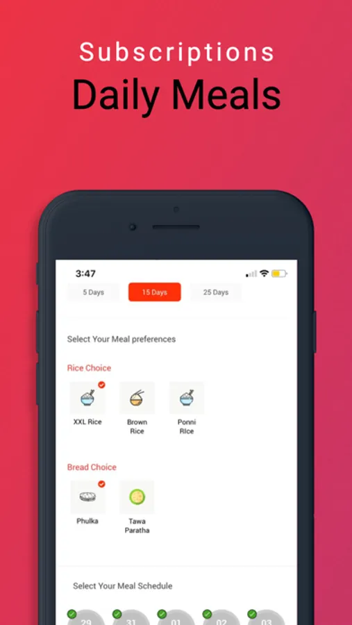 We know how tiring it is to decide what to eat every day and repetition is boring. We offer you 5/15/25 Day Packages for lunch and dinner. Also, you can select your menu from 15 different available items every day. Schedule/reschedule your meals, set your preferences as you wish and all you need is at your fingertips!