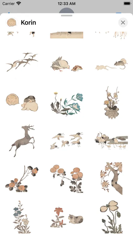 Korin Sticker Pack features cute animals, beautiful scenery and scenes representing Edo period from Korin's Picture Album (Korin gafu) and Korin's Painting Style (Korin gashiki).