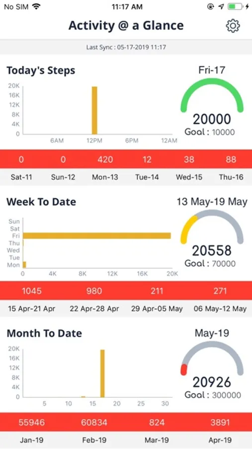 We all loose the daily activity goals some days, well most days. Our Activity @ a Glance allows you to view your daily, weekly, monthly to date steps at a glance. In addition it allows you to view last weeks, and last months data as well. The idea here is that if you follow a weekly or monthly goal, you can make them easily compared to running ten thousand steps. So if you are like most of us and can not do much during weekdays, you can accumulate your goal and then get to your target weekly goal. or if one week you stay behind, you can some extra effort to at least meet your monthly goals.