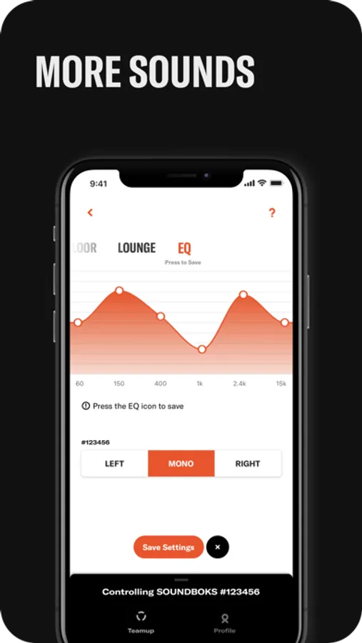 Customize your own sound with the adjustable EQ. If you want more bass, more treble or anything in between, the power is at your fingertip. This is the best equalizer app for your SOUNDBOKS.