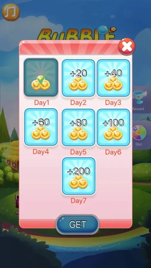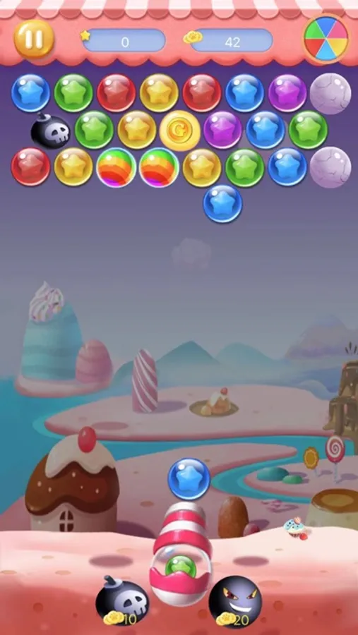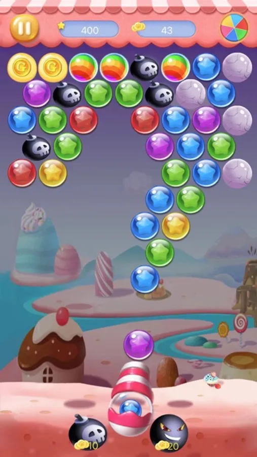 Match 3 or more bubbles of the same color to make them disappear and get score points.