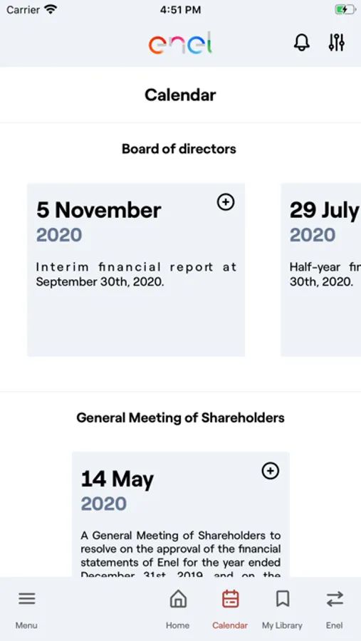 Enel Investor is the Enel App for the financial communication of the Group. The app allows you to follow the updates on the latest financial results, share performance, financial events, and much more.