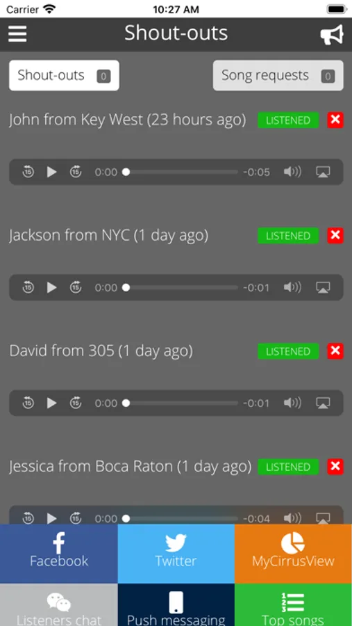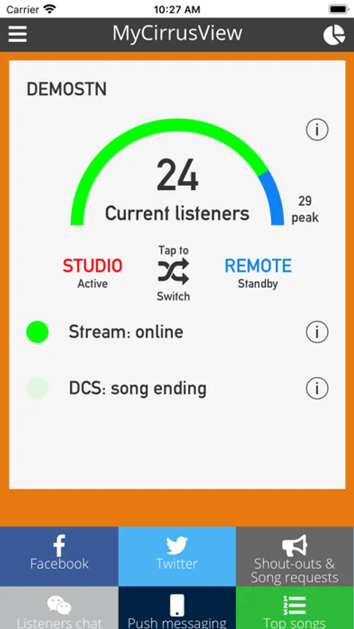 Stay engaged with your listeners 24/7 from any device with the Cirrus Engager. You can send push notifications to listeners via the mobile streaming apps, receive and listen to shoutouts submitted by listeners for on-air playback, chat in real-time, monitor your stream’s health, and much more.