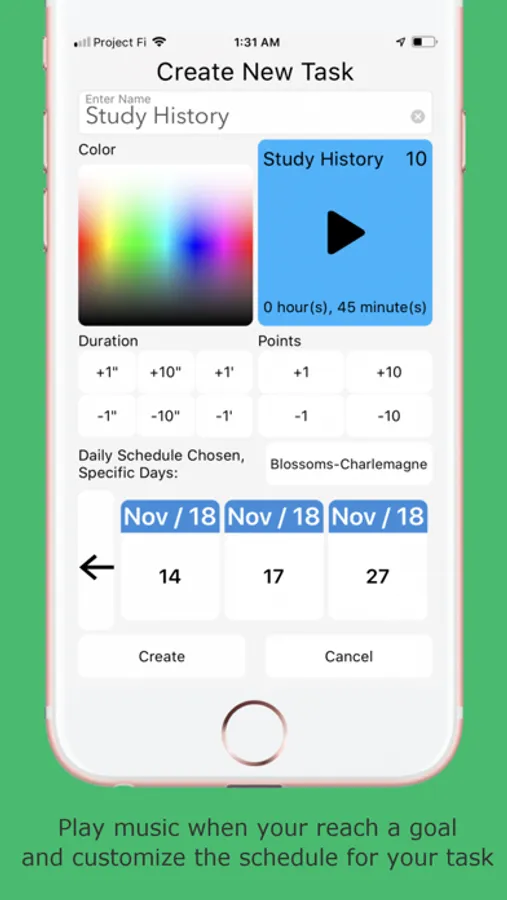 -choose music from your iTunes library to play as an alarm when your task completes.