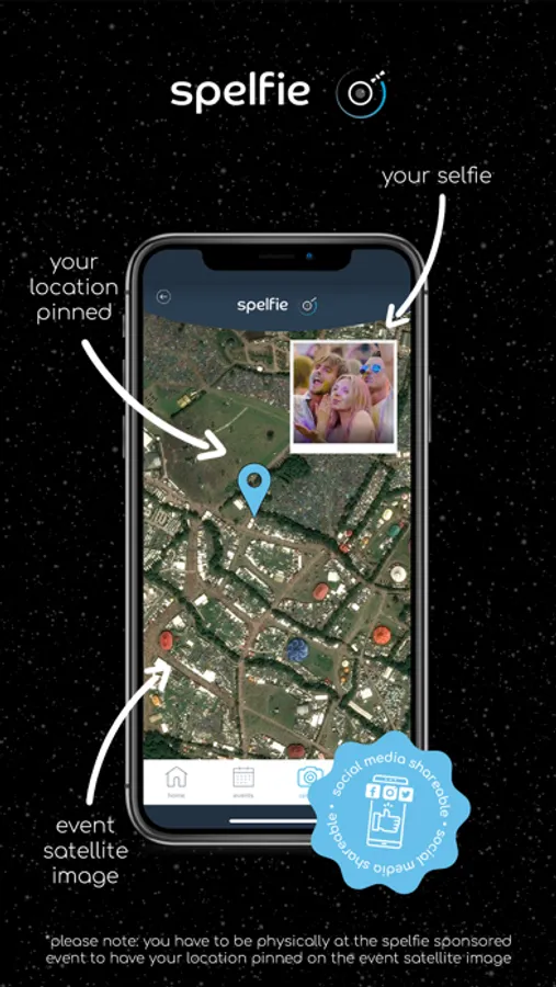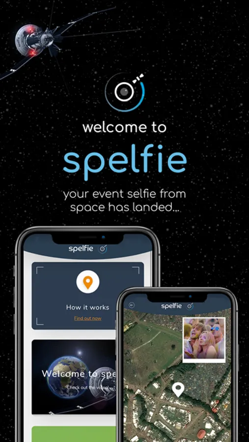 spelfie is the first selfie app of its kind, using satellite imagery to capture your event moment…from space (yes…space)! Capture your own space selfie to share and create memories with friends and family, it’s completely out of this world…
