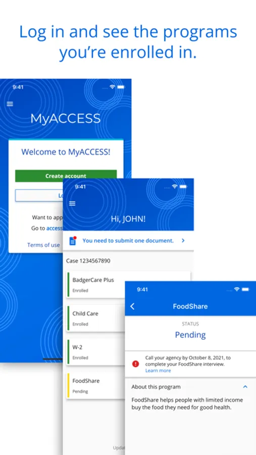 The MyACCESS mobile app provides a simple and convenient way for you to connect to the programs you've applied for or are enrolled in, including Wisconsin Medicaid, BadgerCare Plus, FoodShare, Wisconsin Shares Child Care Subsidy, and Wisconsin Works.
