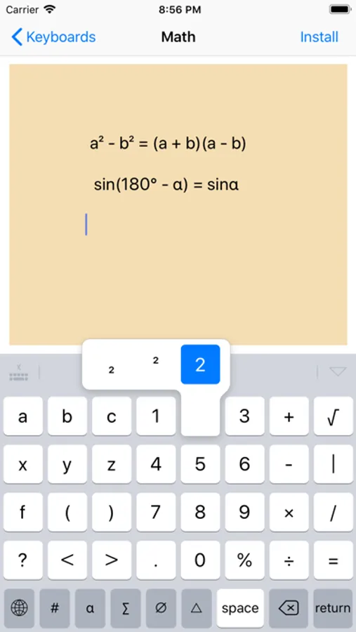 Build a Custom Keyboard with different layouts, keys, unicode and symbols as you wish.