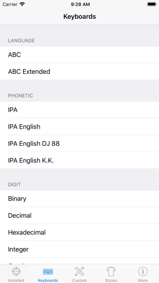 - Digits Keyboard (Binary,Integer,Decimal,Octonary,Hexadecimal)