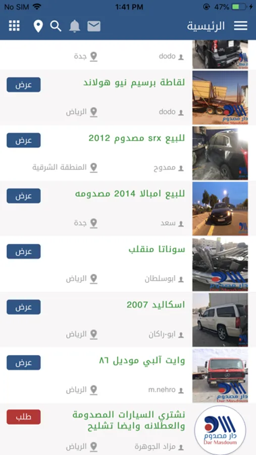 دار مصدوم هو موقع وتطبيق جوال يمكنك من بيع وشراء سيارات مصدومه او قطع غيار او معدات او اي سلع اخرى بكل سهوله ويسر
