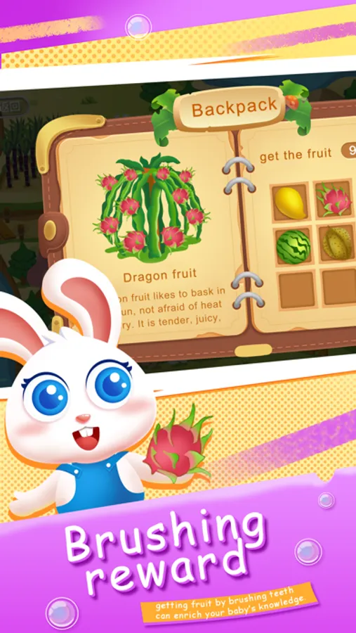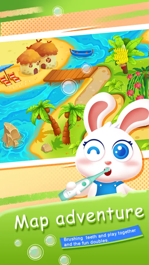 Map: The theme is “Help the lost animals to find the way home”. Grab the children’s sympathetic psychology, they can help animals to get fruits and vegetables and also increase energy by brushing their teeth. Through the cartoon video and funny theme to attract children to brush their teeth.