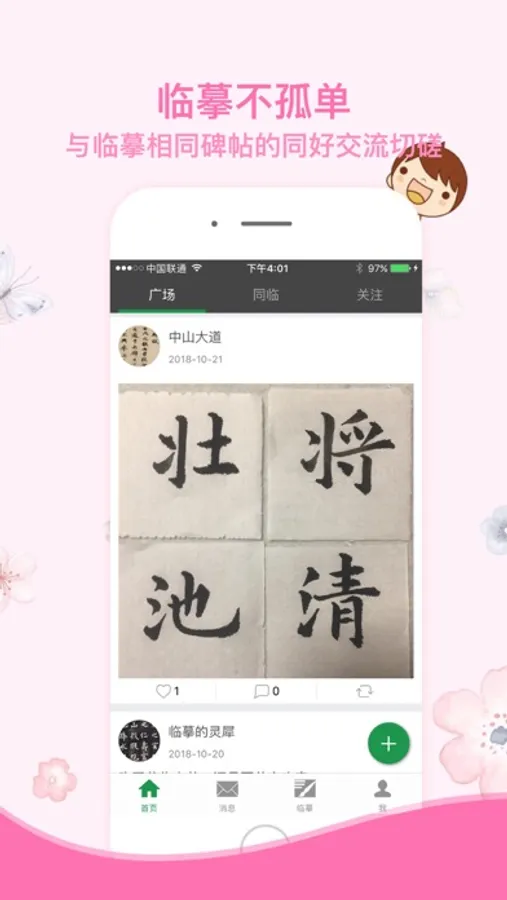 应用汇集了众多书法爱好者的书写社区,特别是可以帮助用户找到正在一起临摹同一碑帖的书友,共同交流心得,切磋技艺。