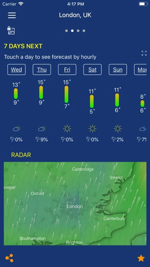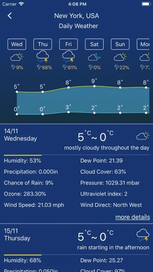 Weather forecast app is beautiful designed and user-friendly. It updates the local weather very quickly and easily. With just a few clicks you can check the today's weather, tomorrow, 5 days with all the indicators: temperature, precipitation, humidity, wind direction, UV index, ...