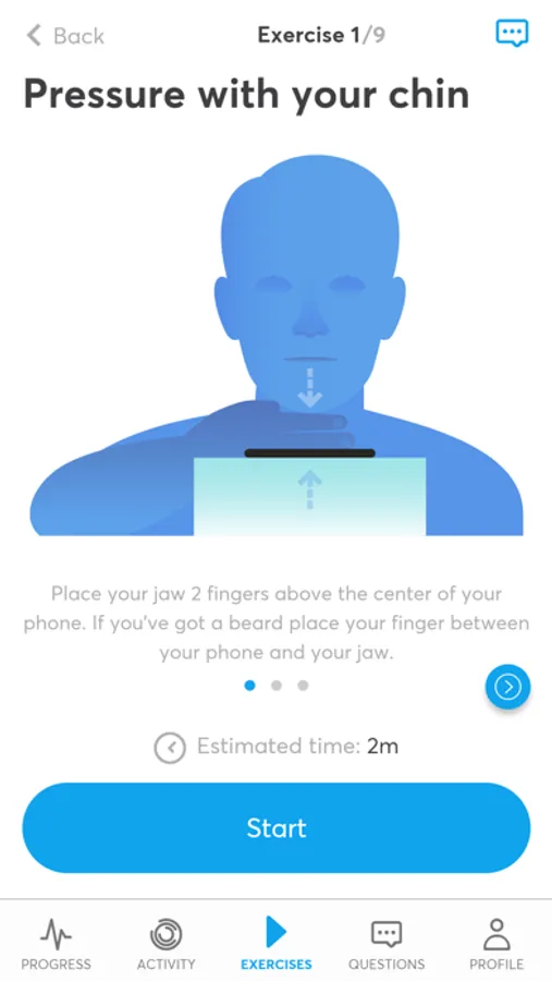 Airway Gym offers you a series of daily exercises to do with your smartphone. You can perform them at anytime you like, as an example you can do some exercises in the morning and do the remaining ones later in the day before going to bed.