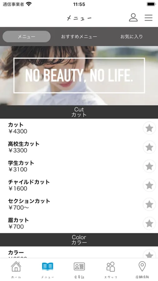 気になるサロンメニューや価格をアプリから簡単にご確認いただけます。