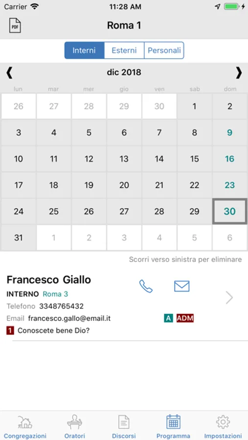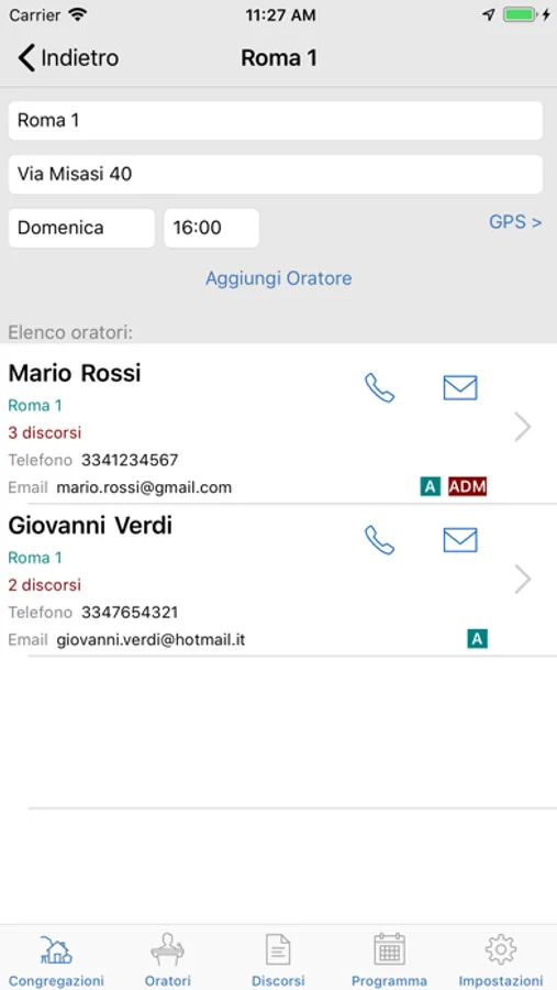 Nominativo, numero di telefono, indirizzo email ed elenco degli schemi posseduti sono utilizzati dai coordinatori al fine di stilare il programma dei discorsi e agevolarne la gestione.